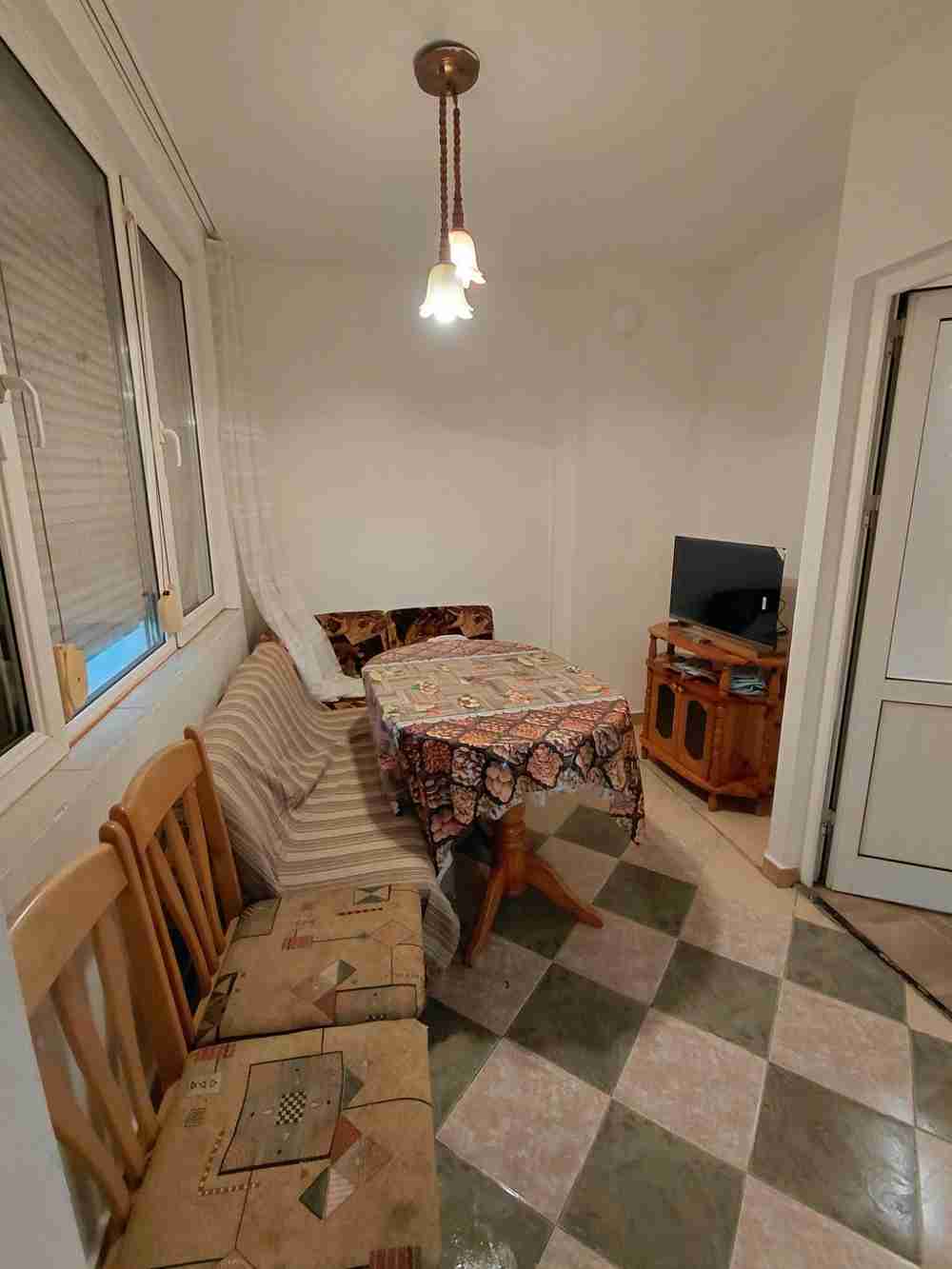 Апартамента е напълно обзаведен с всички мебели и ел. уреди + климатик.