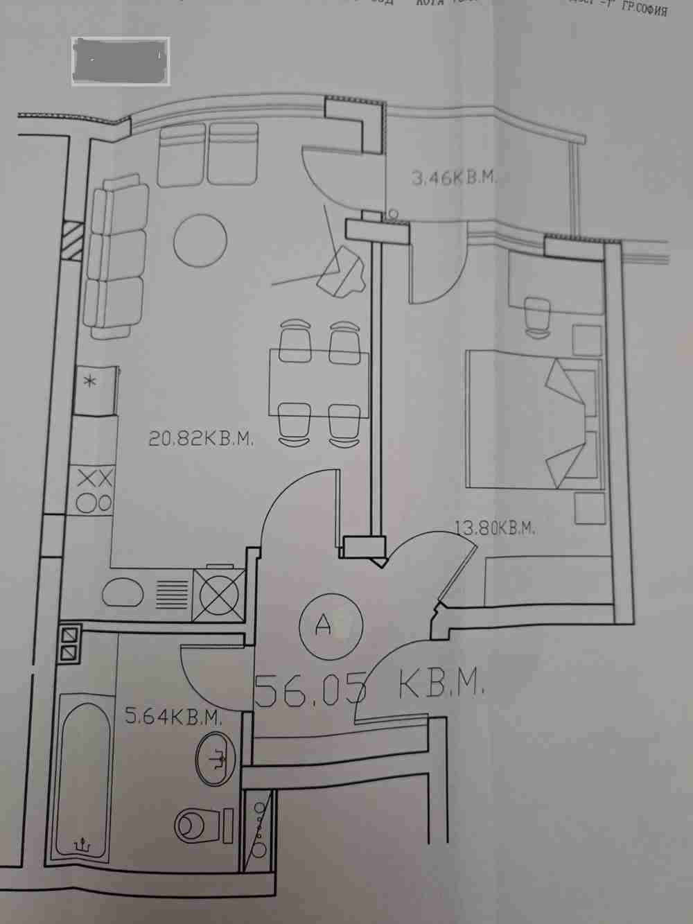 Застроена площ 56,05 кв.м. Площ с общи части 64 кв.м. Има и прилежащи идеални части от земята.