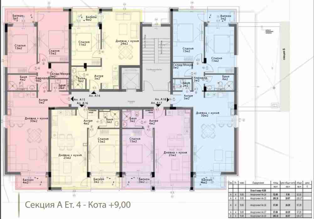 Предлагаме Ви двустаен апартамент в сграда Б, съответно на етажи - 4. Обща площ 67,41кв.м. чиста площ 57,10кв.м.