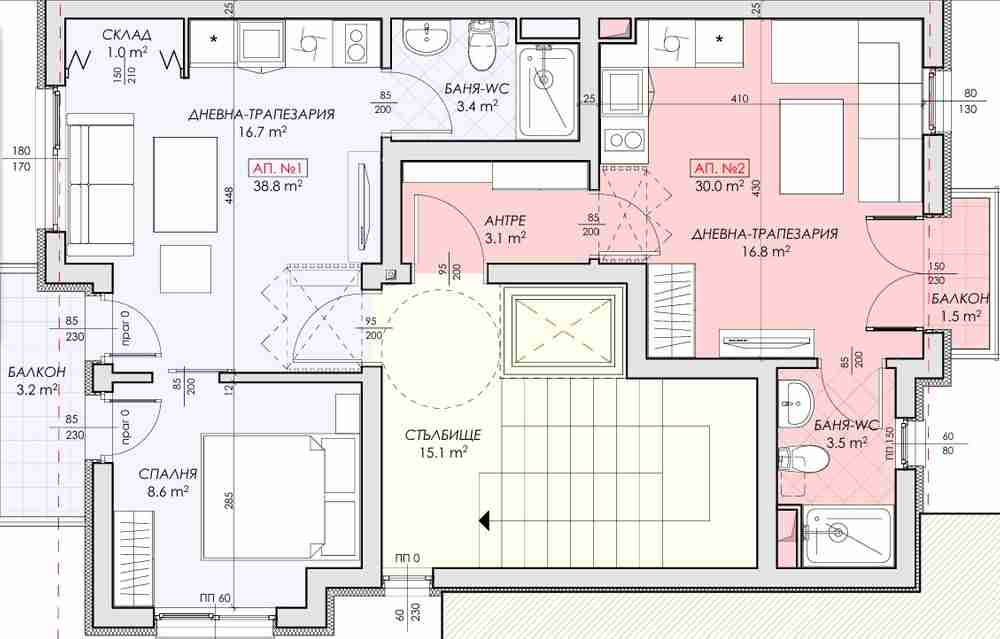 - Апартаменти с различна квадратура едностайни, студиа и двустайни.