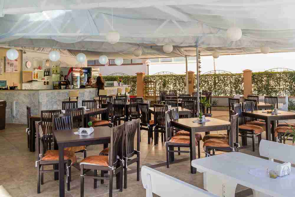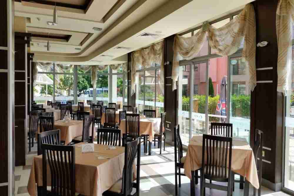 Ресторант с много добра сезонна посещаемост, външен изглед към басейна (80 места), закрита част (80 места), външен изглед към градината (80 места). Пълен комплект оборудване (напълно оборудвана кухня с фурни за пица, фритюрници, скара, електрически и газови котлони, машини за лед, хладилници, фризери. Работи на база all inclusive. Градината на ресторанта разполага с отделна лятна кухня и отделен вход към главната улица, работи и с външни клиенти.