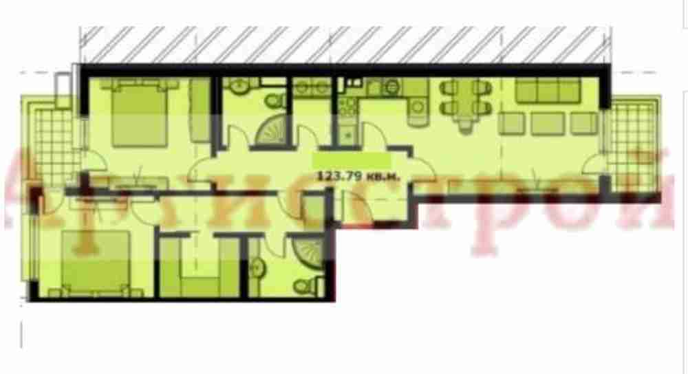 ”Artisstroy” agency /www.artisstroy.com/ offers: spacious three-room apartment / 2 bedrooms/ with a total area of 124 sq.m on floor 3 of a total of 7 in a brick building with Act 16 of 2018 with common parts, luxury controlled access, video surveillance in the area of Zone B5.