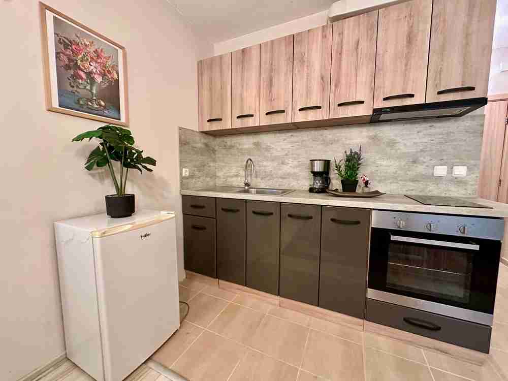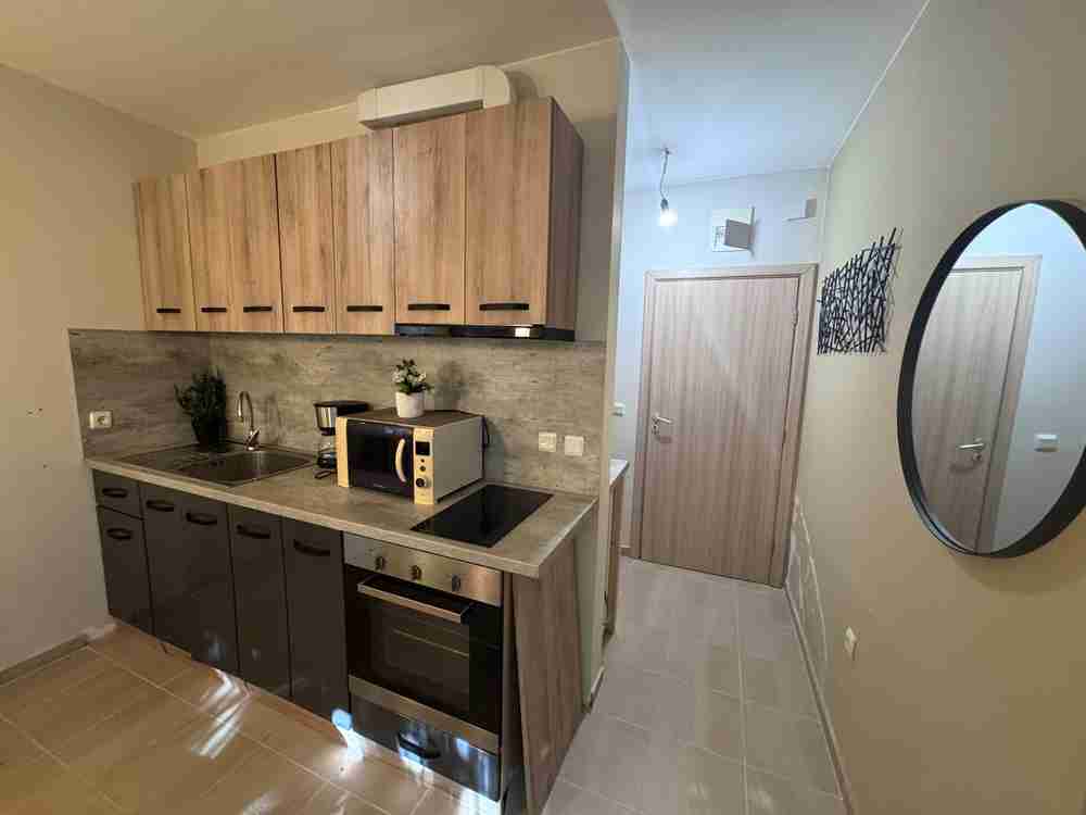 Layout: living room with kitchen and relaxation area, cozy bedroom with all necessary furniture, terrace and bathroom with toilet. Fully furnished - ready to move in.