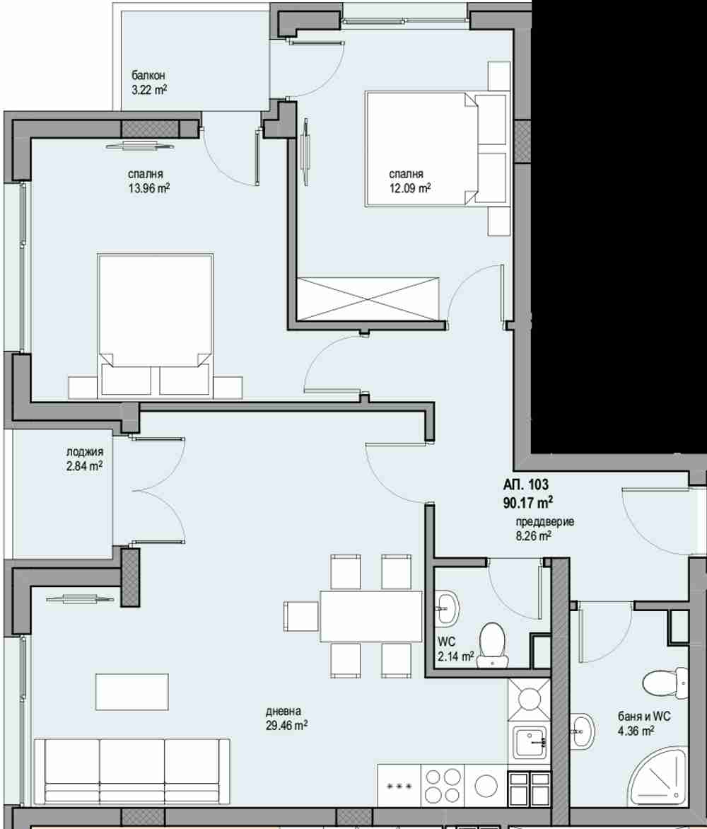 | Type of property | 2-bedrooms Apartment |