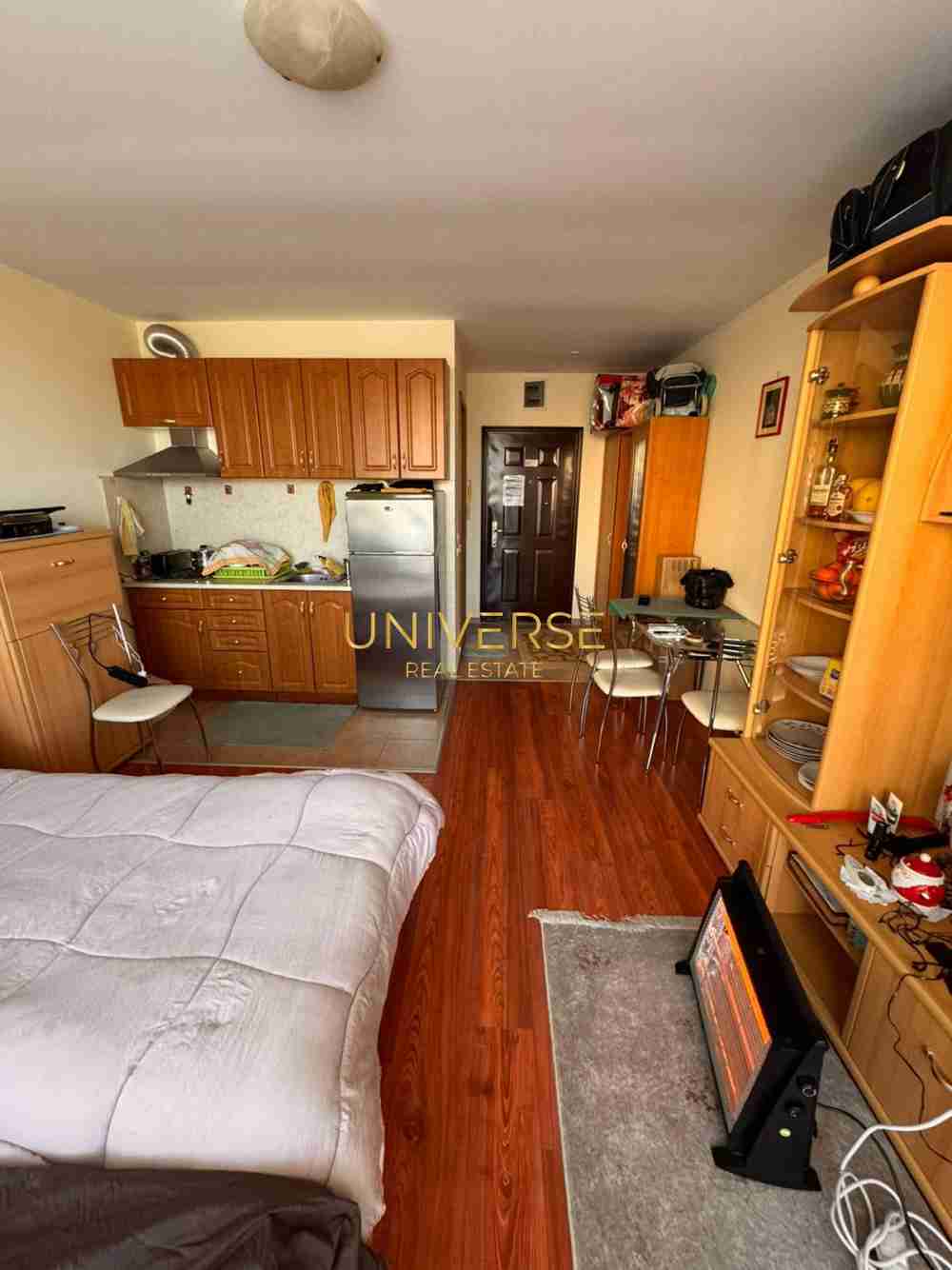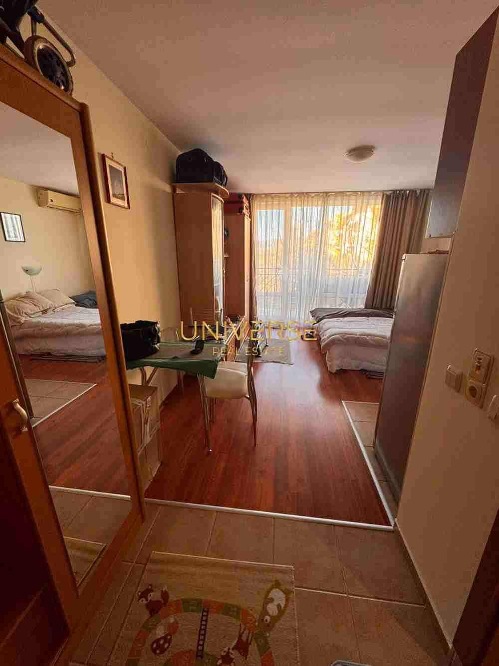 Description: A studio apartment in a luxury complex in Sunny Beach, in the Chaika district, is for sale. It consists of a living room with a kitchenette, a bathroom with a shower, and a balcony. The apartment is equipped with high-quality furniture and appliances. The complex has a swimming pool, parking, and a sauna. Year-round shops are nearby, and the sea is a 7-minute walk away. Act 16. #4654 | |